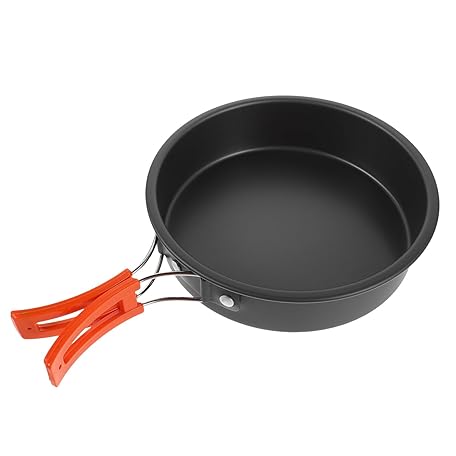 • WOONEKY アウトドア用携帯フライパン テフロン加工のフライパン ポータブルパン 中華鍋を炒める 平らなフライ