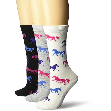 Wrangler Women's Ladies Horse Crew Socks 3 Pair Pack, White/Black/Grey, Medium