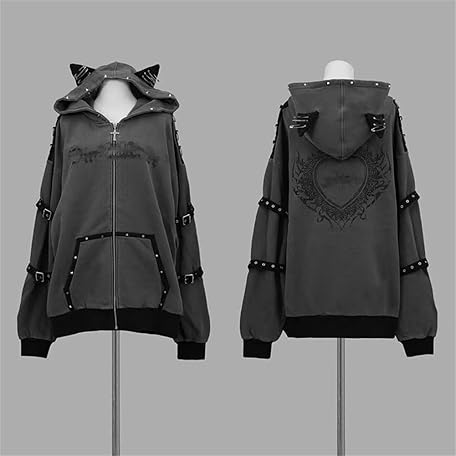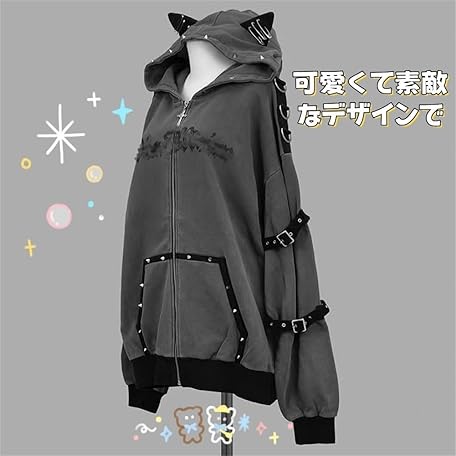 [WURHUDC] 地雷系 パーカー 病みかわいい レディース 長袖 フード付き 天使界隈 ゆったり スウェット ジャージ 可愛い 原宿系 サブカル ジャケット トップス Y2K コート アウター トップス サブカル地雷 ジャケット