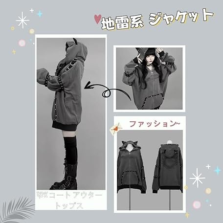 Thông tin sản phẩm [WURHUDC] 地雷系 パーカー 病みかわいい レディース 長袖 フード付き 天使界隈 ゆったり スウェット ジャージ 可愛い 原宿系 サブカル ジャケット トップス Y2K コート アウター トップス サブカル地雷 ジャケット