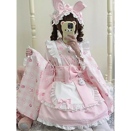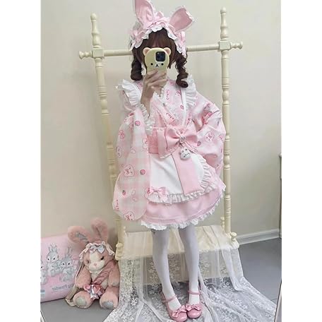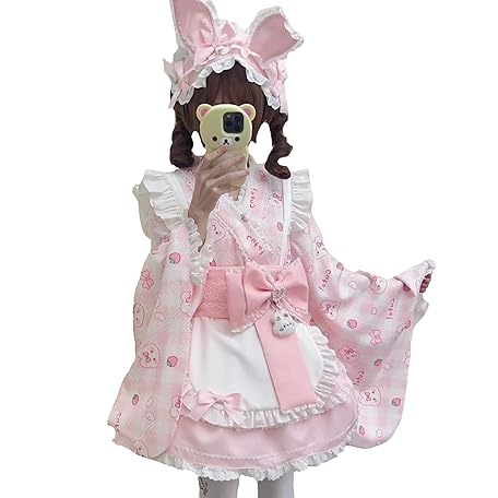 Sản phẩm [XHSUKADO] 量産型 4点セット ワンピース レディース 春 夏 秋 和服 和装 着物 トップス 浴衣 兎柄 ミニ スカート エプロン 帯 リボン付き チェック柄 可愛い 長袖 メード服 喫茶店 仮装 衣装 コスプレ 姫袖 đang được bán với giá ưu đãi là $40.0466 tại nước Nhật.