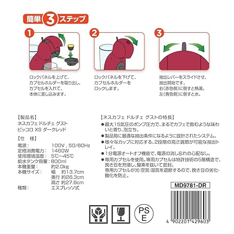 Sản phẩm ネスレ ネスカフェ ドルチェグスト ダークレッドピッコロ XS MD9781-DR đang được bán với giá ưu đãi là $29.9096 tại nước Nhật.