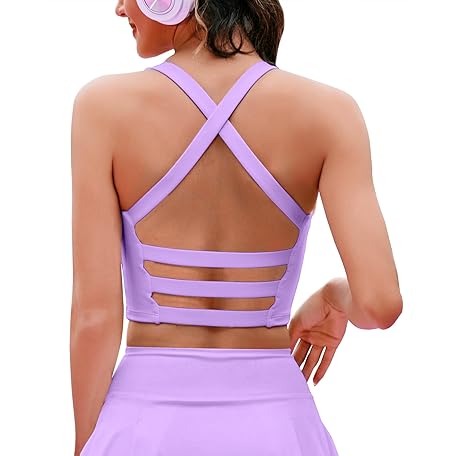 XUNYU レディース ロングライン スポーツ ブラ ストラップ ワークアウト タンクトップ ビルトイン サポート オープンバック クリス クロス ヨガ クロップシャツ, ドリームパープルスポーツブラ, Medium