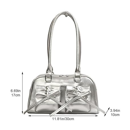 Thông tin sản phẩm Y2K Women's Handbag, PU Leather, Bowknot, Cute, Shoulder Bag, Handbag, Lightweight, Stylish, Silver