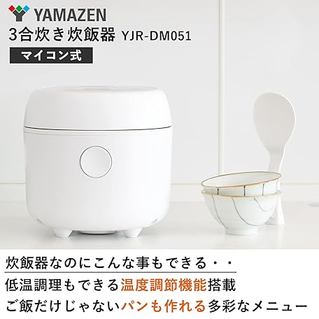 Thông tin sản phẩm Yamazen YJR-DM051(W) Rice Cooker, Living Alone, 3 Pieces, Microcomputer Type, Living for Two People, 11 Types, Low Temperature Cooking, Bread Function, Cleaning Mode, Heat Retention, Reservation,