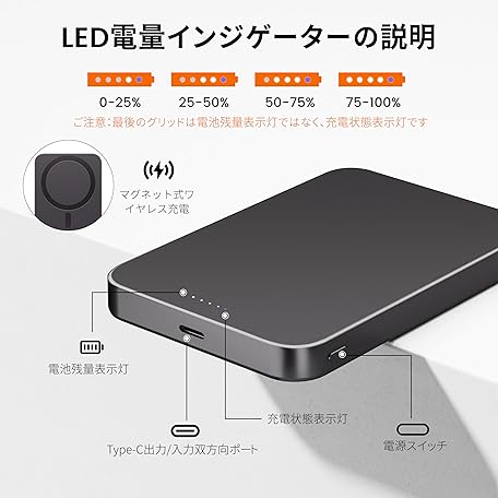 Thông tin sản phẩm Yamisan Mobile Battery, 10,000 mAh, Magsafe Compatible, Wireless Charger, Thin, Lightweight, PD20W Rapid Charging, Magnetic, Smartphone Charger, Large Capacity, Simultaneous Charging of Both Devices,