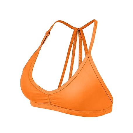 • YEOREO ワークアウト スポーツ ブラ 女性用 パッド入り ストラップ オープンバック ジムブラ ライトインパクト クリスクロス ヨガ クロップトップ, オレンジ, X-Large