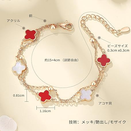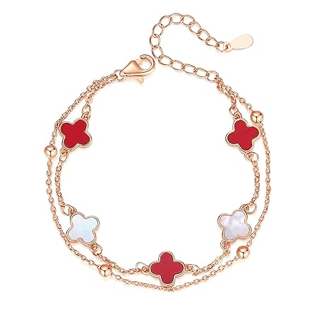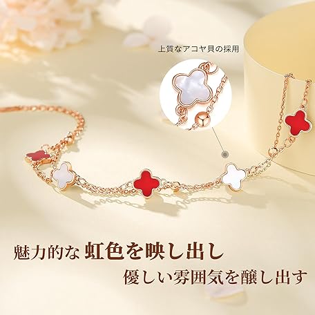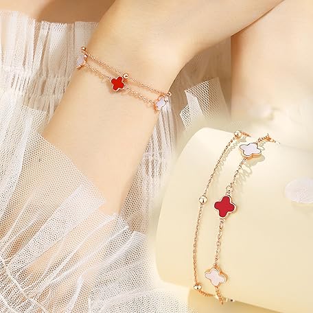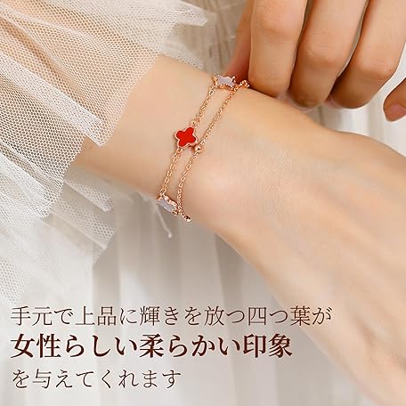 Thông tin sản phẩm YINCHIE Women's Bracelet, Quatrefoil Clover Motif, Popular, Ruby 2 Rows, Adjustable, Accessories, Wedding Anniversary, Birthday Gift, Women's Bracelet, Includes Beautiful Gift Box