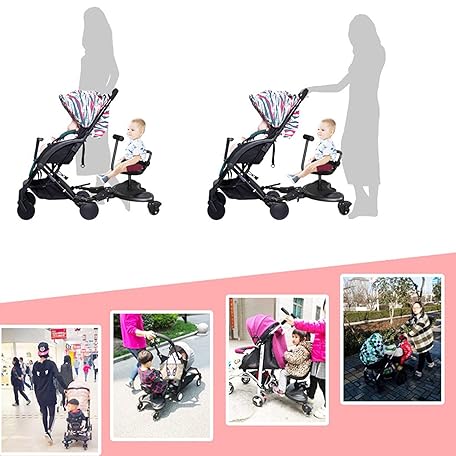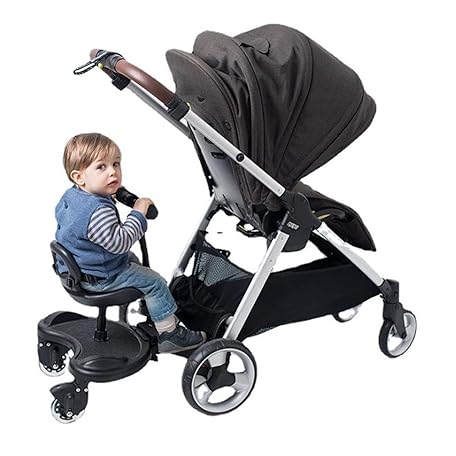 • YokIdLe ベビーカーステップ ベビーカーボード 子供用 二人乗り 補助ペダル 立ち板 座席 ベビーカーパーツ アダプター 取り外し可能 2〜6歳の子供に適用 ブラック