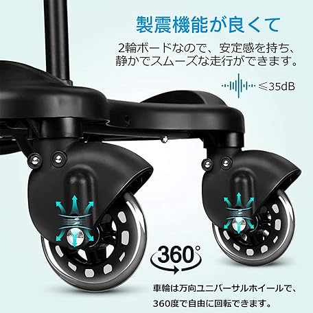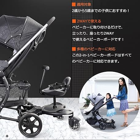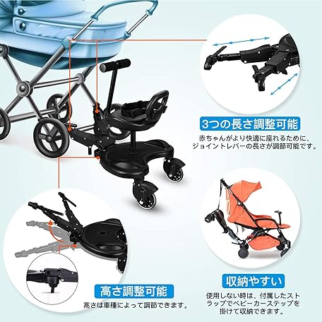 YokIdLe ベビーカーステップ ベビーカーボード 子供用 二人乗り 補助ペダル 立ち板 座席 ベビーカーパーツ アダプター 取り外し可能 2〜6歳の子供に適用 ブラック