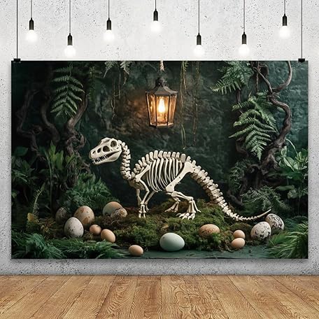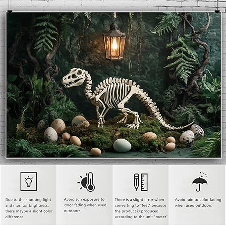 • YongFoto トロピカルジャングル恐竜ワールド背景幕 7x5フィート 恐竜 化石 卵 写真撮影背景 子供 誕生日 ベビーシャワー パーティー バナー 部屋 装飾 男の子 肖像画 写真撮影 壁紙 フォトブース