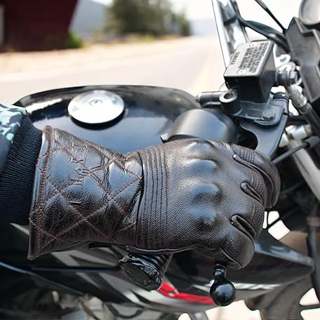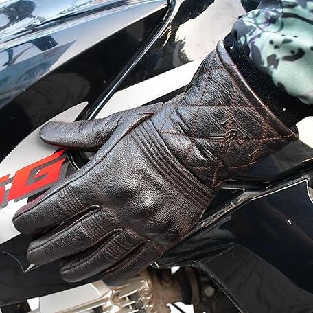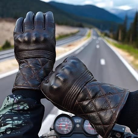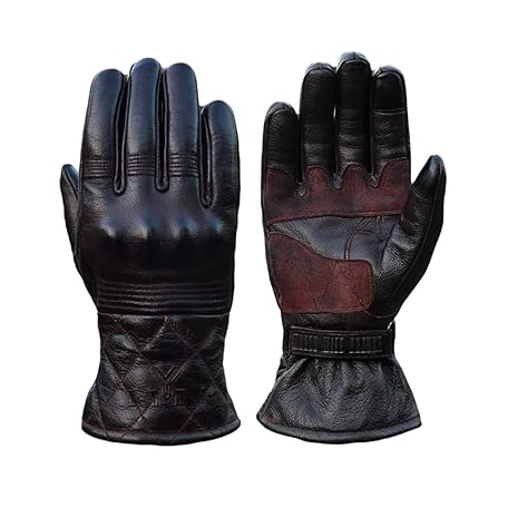 Thông tin sản phẩm YOSHI Biker Gloves, Winter Gloves, Leather Gloves, Goat Leather, Diamond Stitching, Vintage Finishing, Touchscreen Compatible, Quilted Design, Thermal Gloves (DARK BROWN, LL)
