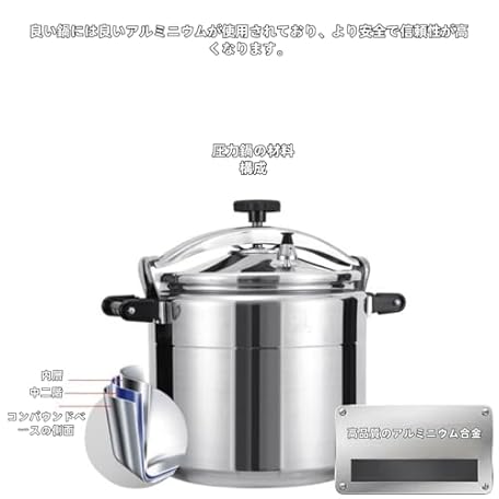 Thông tin sản phẩm Youluck Pressure Cooker, Large Capacity, 2.3 gal (9 - 75 L), Commercial Cooker, Gas Stove, Large Capacity, Pressure Cooker, Aluminum, All Purpose for Hotels, Soup Pot, Explosion-proof, Airtight, Easy