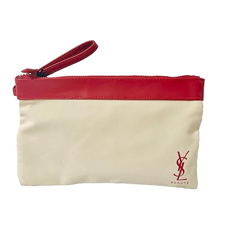 • イヴ・サンローラン YSL コスメティック クリーム レッド フラット キャンバス ポーチ メイクアップバッグ YSL フレグランスバッグ (長さ9.25 x 高さ5.5 x 幅0.25)-ミディアム