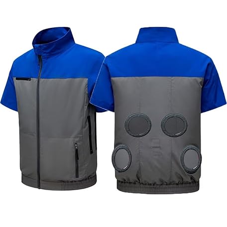 Yucahype Work Clothes with Fan Hole, Short Sleeve, Clothes Only, 4 Holes, Adjustable Size, Air Conditioning Wear, Work Clothes, Jacket, Air Cooled Clothes, Work Wear, Heat Stroke Prevention