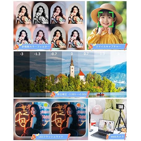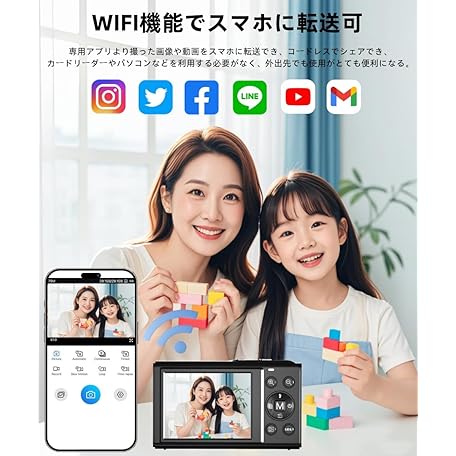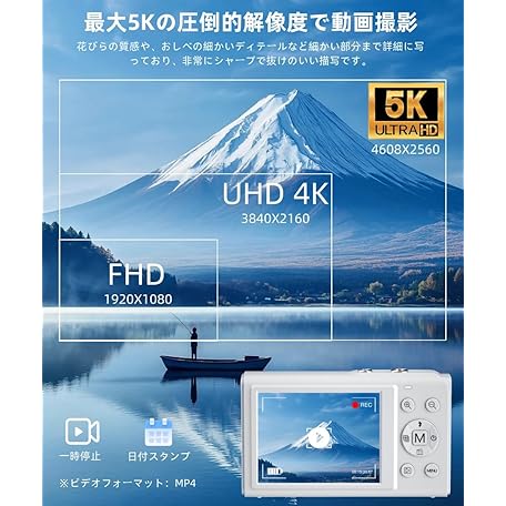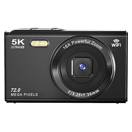 YULINJIA Digital Camera, 5K Digital Camera, Sending to Smartphones, WiFi Transmission Function, 72 Million Pixels, 64 GB Micro SD Card Included, Auto Focus Function, 16x Digital Zoom, LED Light