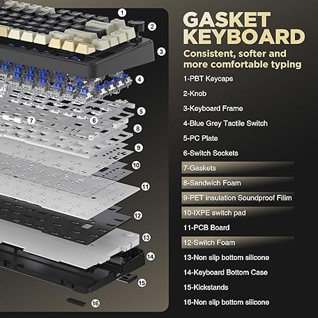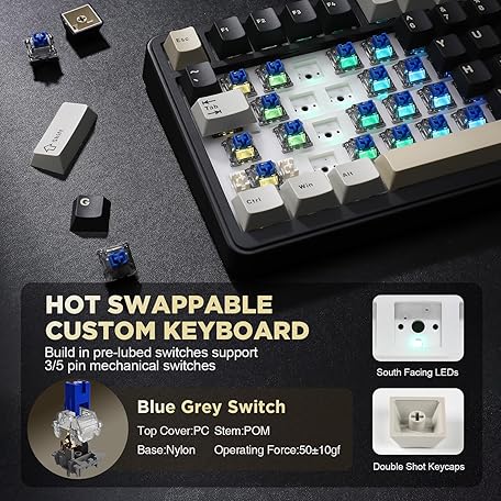 Thông tin sản phẩm YUNZII B75 75% Wired Mechanical Keyboard with Hot Swap Gasket RGB Backlight Heavy Duty English Sequence PBT Key Cap Cherry Profile for Win/Mac (Black, RGB Blue Grey, Tactile Switch)