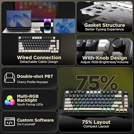 Sản phẩm YUNZII B75 75% Wired Mechanical Keyboard with Hot Swap Gasket RGB Backlight Heavy Duty English Sequence PBT Key Cap Cherry Profile for Win/Mac (Black, RGB Blue Grey, Tactile Switch) đang được bán với giá ưu đãi là $89.7615 tại nước Nhật.