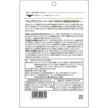 Thông tin sản phẩm Yuuki Pharmaceutical SP Glucosamine Super DX + MSM, Approx. 25 - 33 Day Supply, 200 Capsules, Supplement, Chondroitin, MSM Collagen, Muscular Grass
