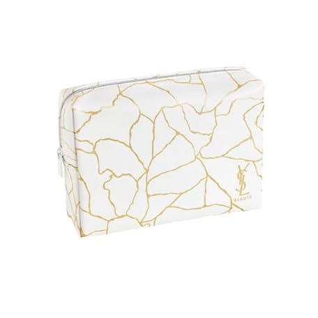 Yves Saint Laurent Square White Gold Marble Pattern Pouch, white/gold