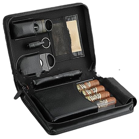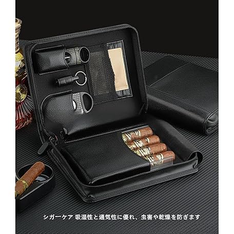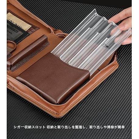 Zdaqian シガーバッグ シガーケース 葉巻ケース ポケット付きレザー6本用シガーバッグ 葉巻入れ ステンレス シガー用収納 小物入れ 軽量 ポータブルトラベル 携帯 喫煙具 メンズ プレゼント (ブラック)