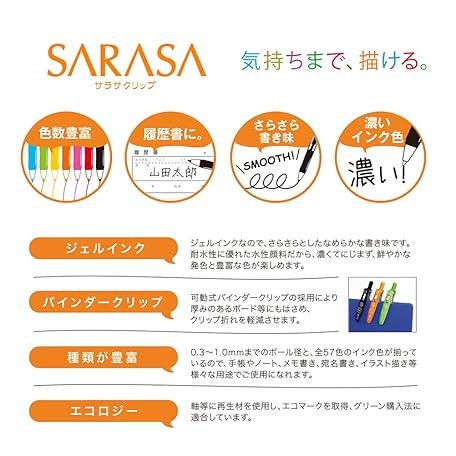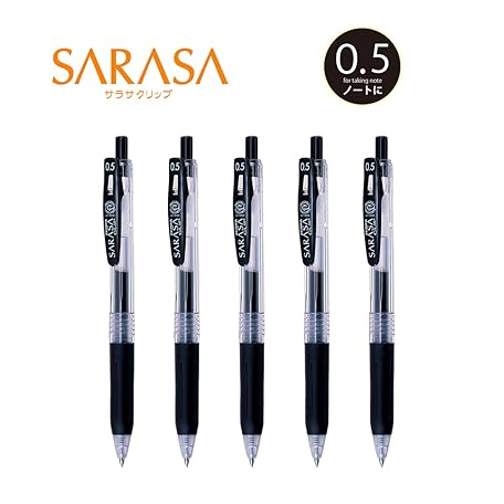 • Zebra Sarasa Clip P-JJ15-BK5 Ballpoint Gel Pen, 0.02 inch (0.5 mm), 5 Pens, Black