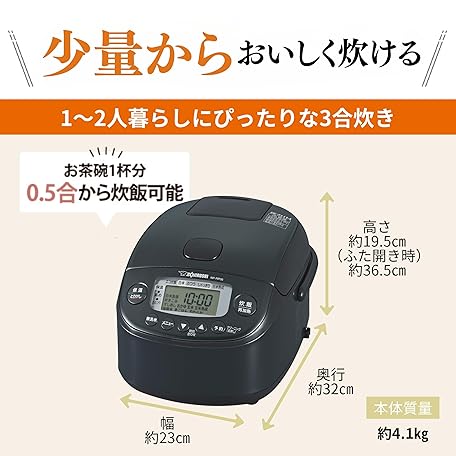 Zojirushi Mahobin NP-RP05-BZ Rice Cooker, 3 Pieces, Living Alone, Small Capacity, Extreme Cooking, Pressure IH Type, Made in Japan, Heat Retention 30 Hours, Slate Black