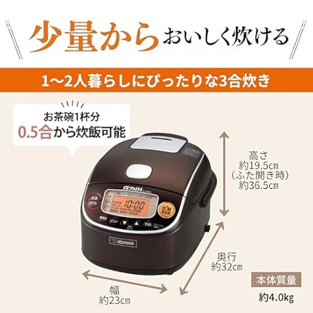 Thông tin sản phẩm Zojirushi NP-RM05-TA Rice Cooker, 3 Pieces, Pressure Induction Type, Extreme Cooker, Black Round Thick Cooker, Heat Retention 30 Hours, Brown