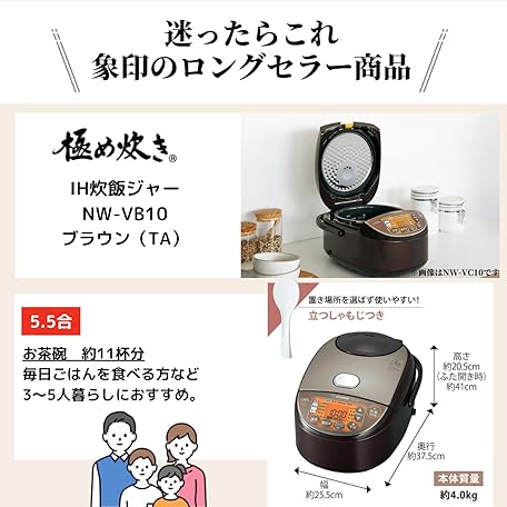Thông tin sản phẩm Zojirushi NW-VB10-TA Rice Cooker, 4.2 Cups (5.5 Gou), Extreme Cooker, Induction Heating, Made in Japan, 30 Hours Heat Retention, Brown