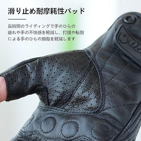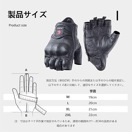 Thông tin sản phẩm ZVCXOE バイク グローブ 夏 ハーフフィンガー 本革 ヤギ革 ハードプロテクター ゴートスキン パンチングメッシュは快適で通気性がありタッチスクリーン 耐衝撃 滑りにくく耐摩耗性があります ブラック M/L/XL