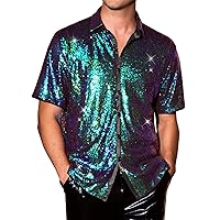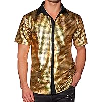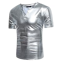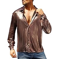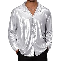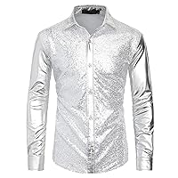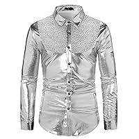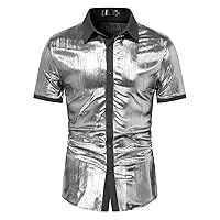 Tìm kiếm "Men's Fashion Shiny Nightclub Metallic Silver Button Down Shirts"