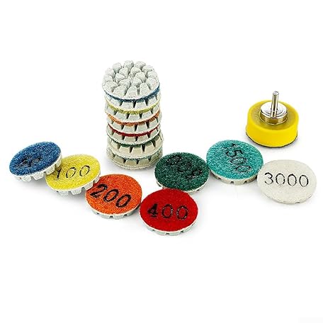 Sản phẩm 1 Inch Polishing Padfor Marble, Granite, Concrete and Quartz, 8 Grits from 50 to 3000, Wet and Dry Buffer Grinding Disc, Flexible Polymer Fiber Sanding Disc(400 Grit) đang được bán với giá ưu đãi là $6.9215 tại nước Anh.