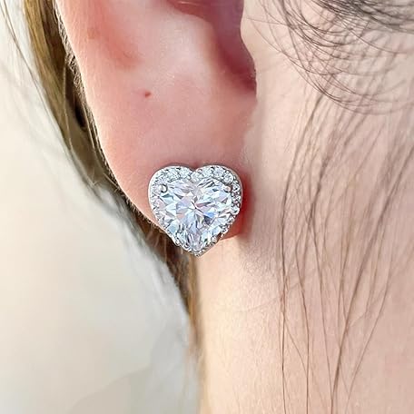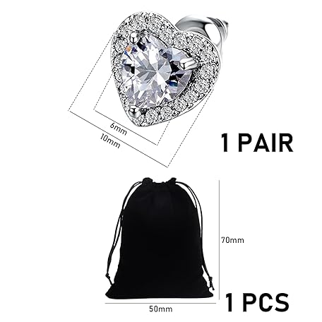 Thông tin sản phẩm 1 Pair of Women's Earrings, Silver Heart-Shaped Earrings, Cubic Zirconia Earrings, Hypoallergenic Silver Earrings, Gift for Women, Suitable for Weddings and Anniversaries