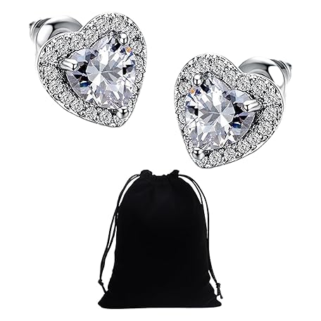 Sản phẩm 1 Pair of Women's Earrings, Silver Heart-Shaped Earrings, Cubic Zirconia Earrings, Hypoallergenic Silver Earrings, Gift for Women, Suitable for Weddings and Anniversaries đang được bán với giá ưu đãi là $5.0467 tại nước Anh.