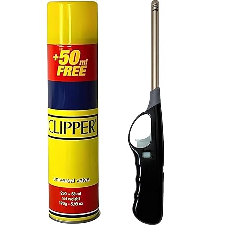 1 x Refillable Lighter with Clipper Gas Adjustable Flame Windproof Long Reach Candle Lighter for Kitchen Cooking BBQs Camping Wood Burner & Fireworks