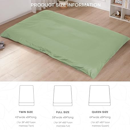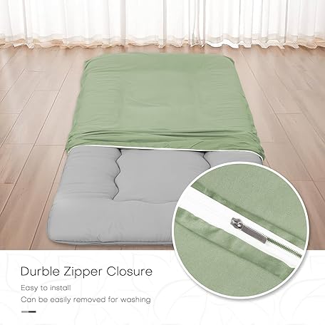 Thông tin sản phẩm 100% Cotton Floor Futon Mattress Cover (Only Cover), Soft Skin-friendly Washable Zippered Futon Cover for Traditional Japanese Floor Futon Mattress, Tatami Mattress Cover Dustproof Cover (Twin, Green)