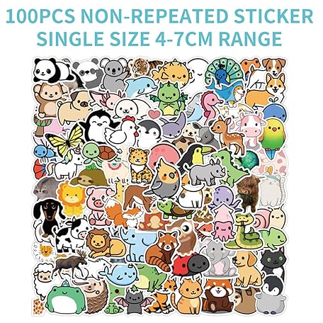 Thông tin sản phẩm 100 Pcs Cute Animal Stickers, Colorful Animal Waterproof Stickers Aesthetic Sticker Pack for Water Bottles, Laptop, Computer, Car, Luggage, Cup, Phone, Scrapbooking, Art, Crafts, MacBook, Skateboard