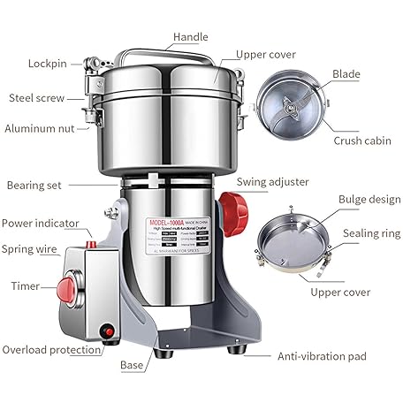 Sản phẩm 1000g Electric Grain Grinder Spice Grain Mill Stainless Steel 30s 25000RPM High Speedy Grinding with Overload Protection& 5min Timer Mill for Dry Spice Herbs/Nut/Coffee đang được bán với giá ưu đãi là $179.523 tại nước Anh.