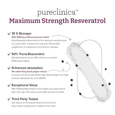 Sản phẩm 1000mg Resveratrol x 90 Tablets (3 Months’ Supply). 10 x Strength w/Black Pepper Extract đang được bán với giá ưu đãi là $42.946 tại nước Anh.