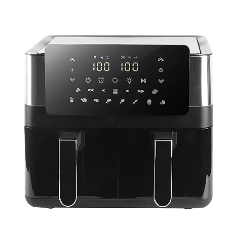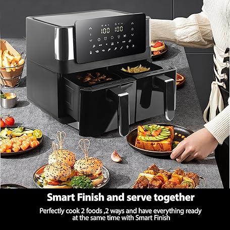Thông tin sản phẩm 10L Air Fryer Dual Basket - Digital Touchscreen, Smart Sync Finish, Auto Shutoff, 2 Independent Nonstick Dishwasher-Safe Frying Baskets - Digital Double Air Fryer - Black