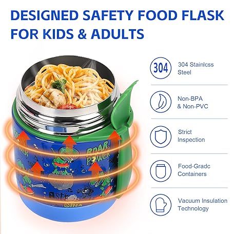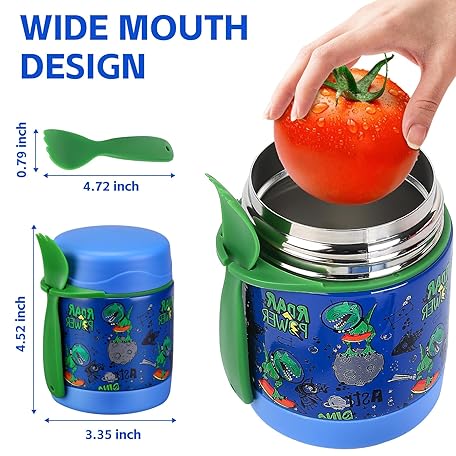 Thông tin sản phẩm 10oz Soup Thermo for Hot Food Kids Insulated Food Jar,Thermo Hot Food Lunch Container, Width Mouth Stainless Steel Lunch Box for Kids with Spoon (Blue-dinosaur)