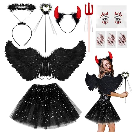 Sản phẩm 10Pcs Halloween Devil Costume Set Black Devil Fancy Dress Halloween Angel Costume Halloween Costume Devil Wings Devil Horns Scars Tattoo for Halloween Party Cosplay Costume,Fancy Dress Party Outfit đang được bán với giá ưu đãi là $8.7527 tại nước Anh.