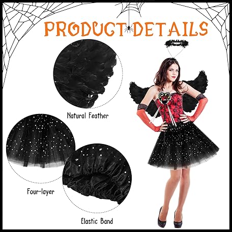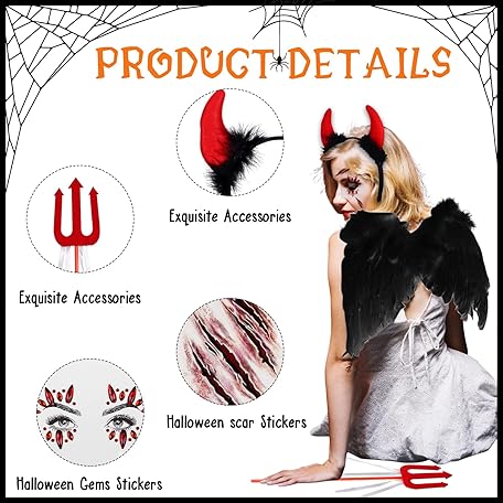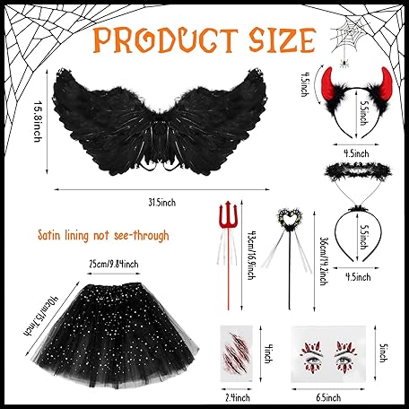 Thông tin sản phẩm 10Pcs Halloween Devil Costume Set Black Devil Fancy Dress Halloween Angel Costume Halloween Costume Devil Wings Devil Horns Scars Tattoo for Halloween Party Cosplay Costume,Fancy Dress Party Outfit
