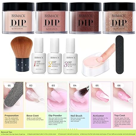 Thông tin sản phẩm 10Pcs/Set Nail Dip Powder Kit, 4 Color Dip Powder with Base/Top Coat Activator, Nail Kits for DIY, Brown