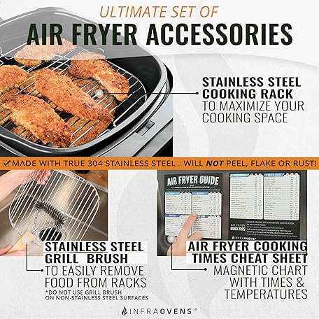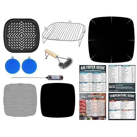 Thông tin sản phẩm 12 Pcs Air Fryer Accessories with Rack, Grill Pan, Air Fryer Cheat Sheet for Ninja, Gourmia, Instant Pot, Paula Deen, Power XL, Philips, Square Air Fryer Liners for Basket Freidora de Aire
