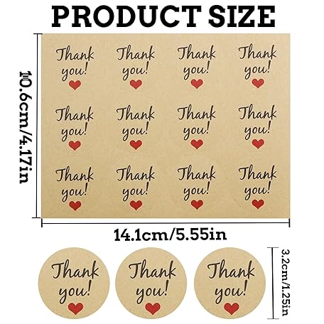 Thông tin sản phẩm 120 Pcs Thank You Stickers, 3.2cm Self-Adhesive Thank You Labels, Kraft Thank You Heart Stickers for Business Packaging Gift Cards