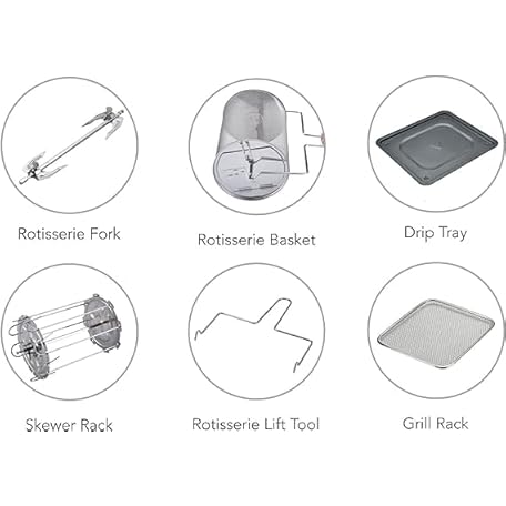 Thông tin sản phẩm 12L Air fryer Oven AT-80368 With 9 Pre set modes, All Accessories Included, Rotisserie Stick And Basket With 3 Trays For Cooking, Bake, Roast And More With Airflow Circulation For Healthy Eating 1800W