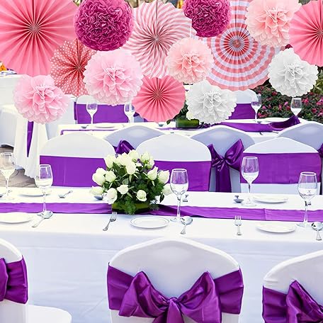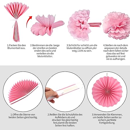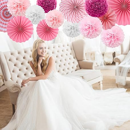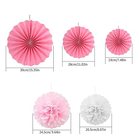 Thông tin sản phẩm 14 Pcs Pink Paper Party Decorations, Hanging Paper Pompoms Pom Poms Flower Papers Fan Decoration, for Wedding Festival Carnival Mexican Birthday Party Decorations