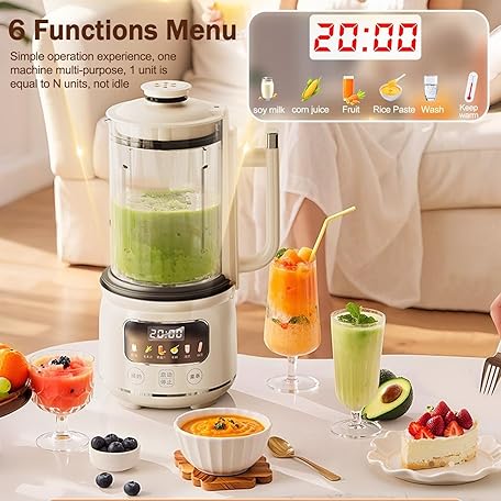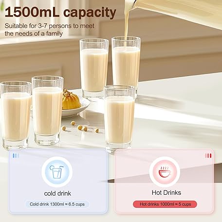 Thông tin sản phẩm 1500ML Soy Milk Maker Machine, 6 in 1 Automatic Nut Milk Maker with Delay Start/AutoClean/Maintain Temperature/Boil Water 12 Blades Wall Breaking Machine for Soybeans, Porridges, Juice, Corn Juice