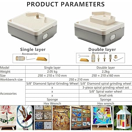 Thông tin sản phẩm 150W Portable Stained Glass Grinder Machine, 4200RPM Glass Diamond Ceramics Bench Grinder Machine, Glass Art Grinding Machine with 5/8'' Grinder Bit, for Glass Ceramic Art Decoration(Single Layer)